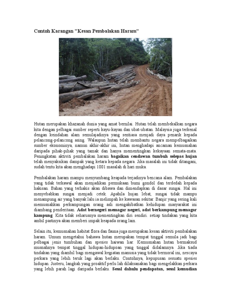 Contoh Karangan Pembalakan Haram Pdf